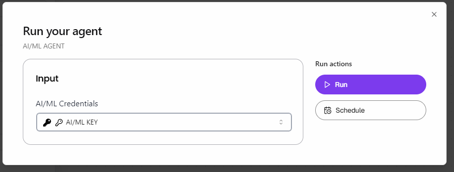 Press “Run” next to your saved agent.